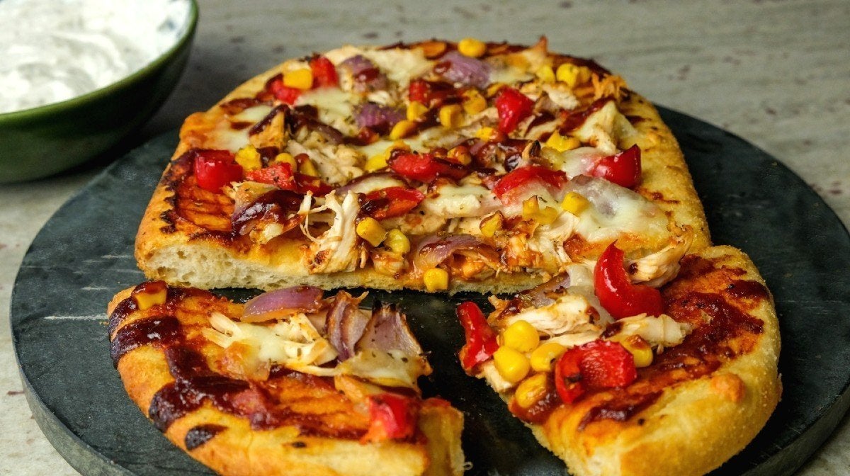 - Meanwhile, mix together the BBQ Sugar-Free Sauce, tomato puree, salt and pepper to make the base of your pizza.