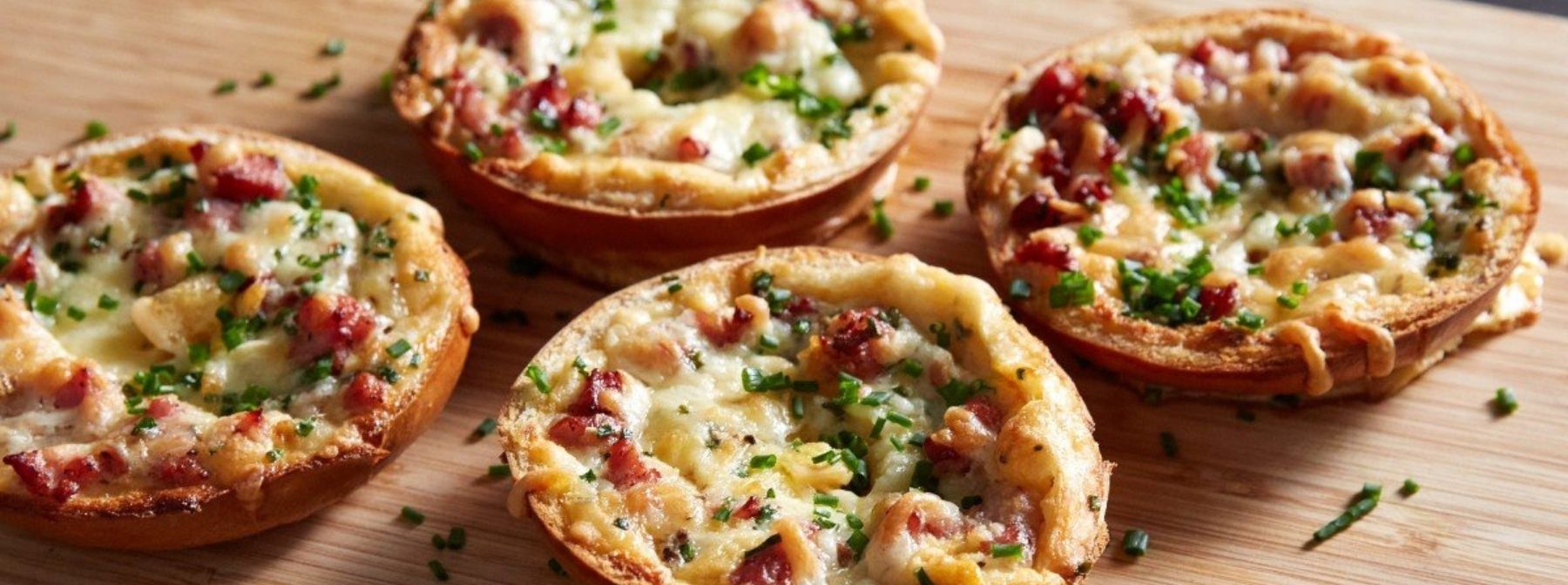 - Top each bagel with plenty of grated cheddar along with a sprinkle of chives and then cook for 10 minutes. Allow to cool for a few minutes before biting into pure heave — be careful of that hot cheese though!
