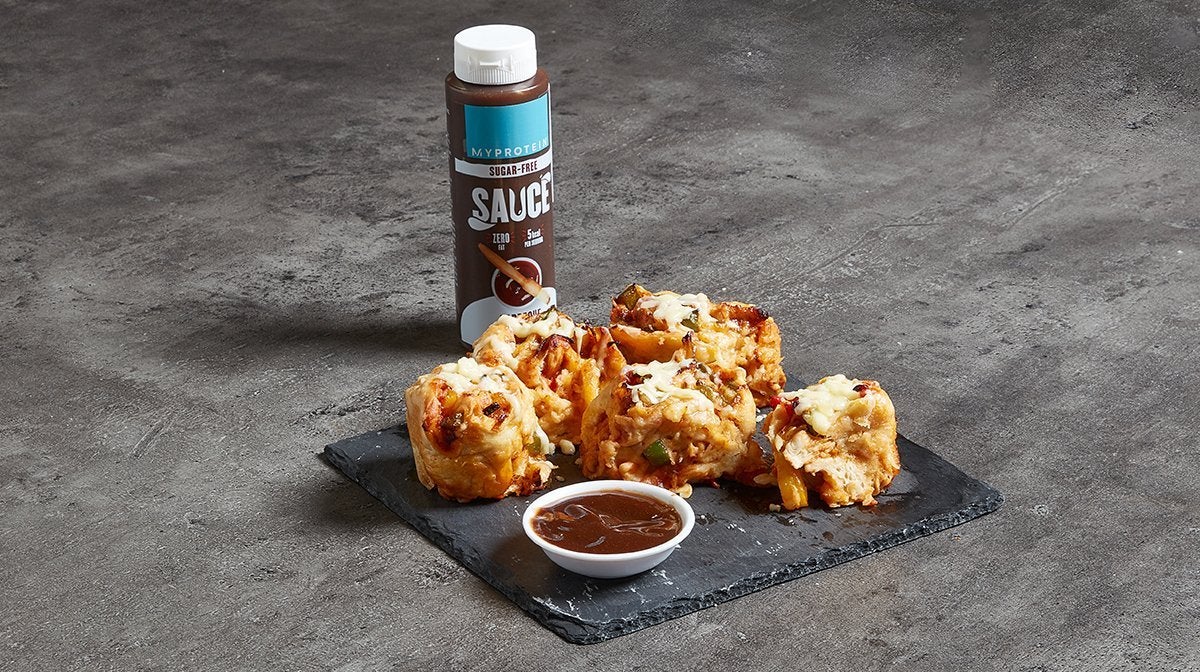 Leave to cool for a few minutes before carefully cutting out each pizza roll section. Serve with plenty of our BBQ Sugar-Free Sauce and enjoy!