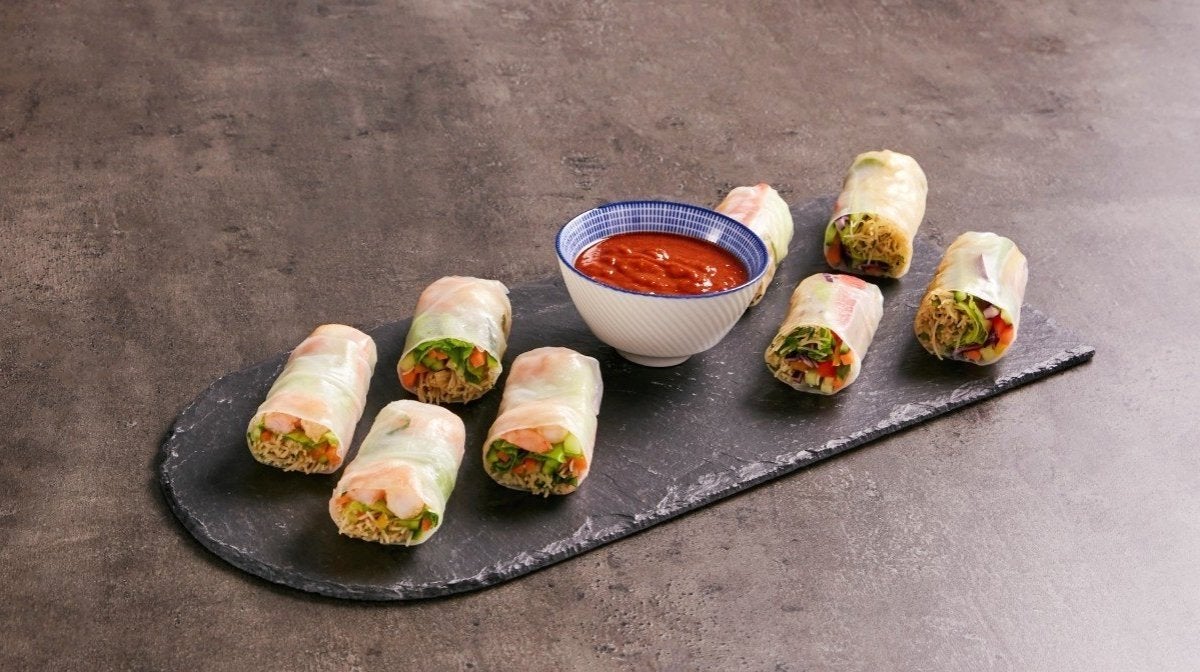 - Serve the fresh spring rolls with plenty of the dipping sauce in a side bowl and enjoy immediately!