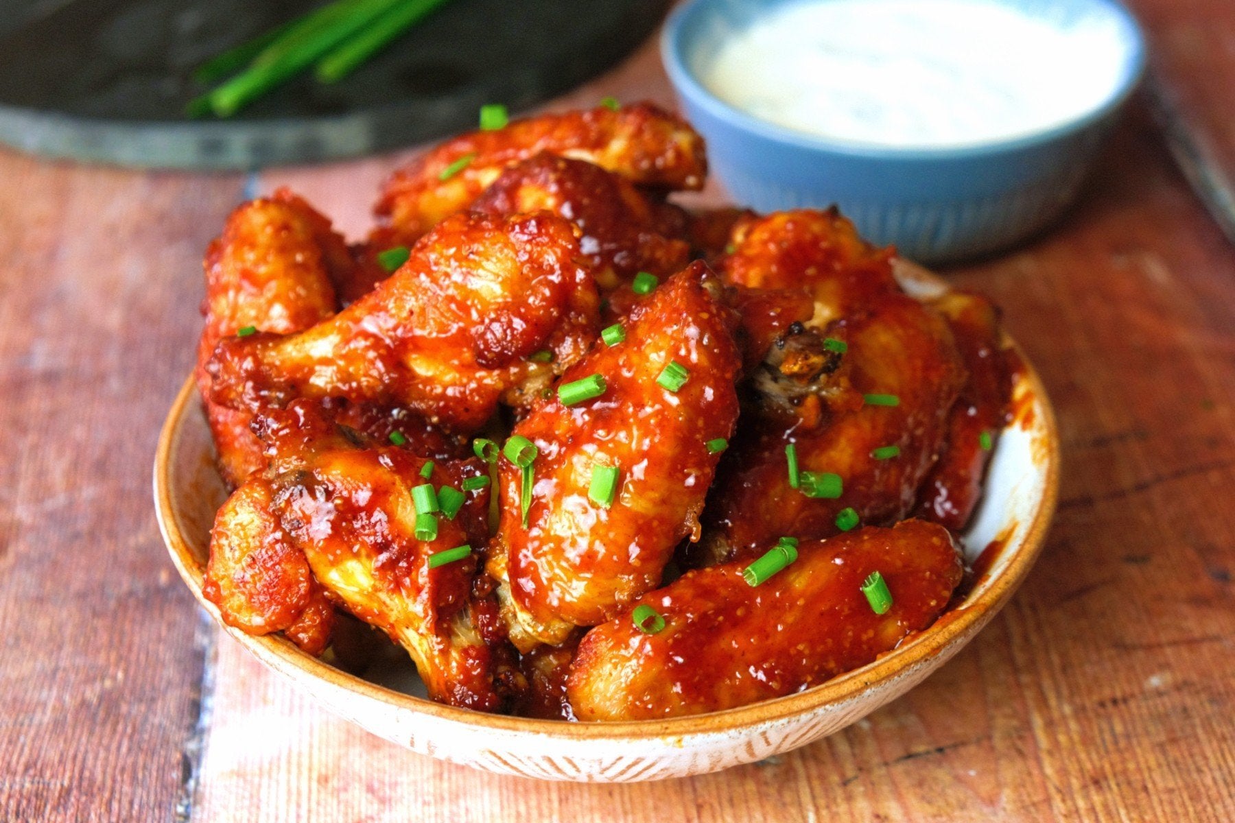 - Meanwhile, mix together the honey BBQ sauce ingredients until fully combined. Once wings are baked, remove from oven and drizzle with honey BBQ sauce. Using tongs, flip your wings to coat in sauce and then once completely coated, bake for a final 5 minutes and then remove.