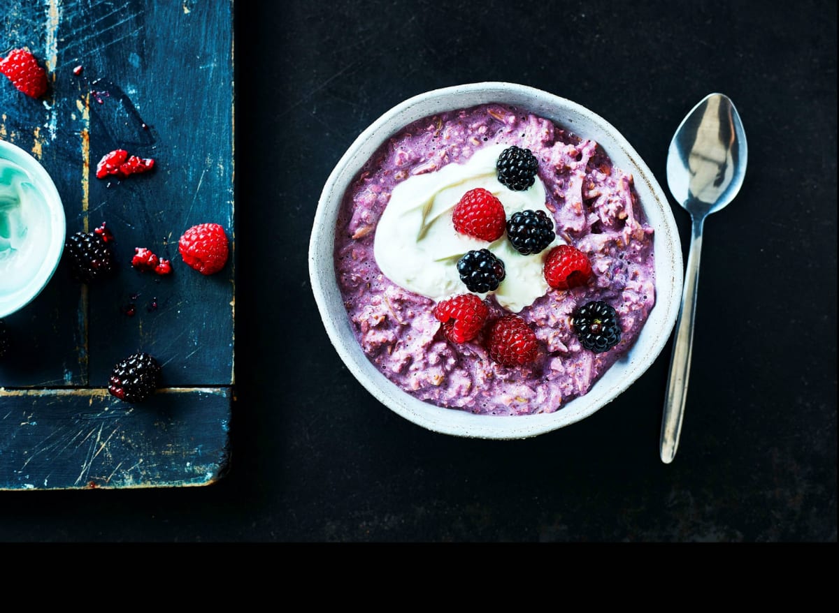 The purply porridge from the berries is sure to brighten up the darkest of mornings and get you ready for the day. It's also incredibly low in fat and contains only natural sugar, making it the perfect health kick start.