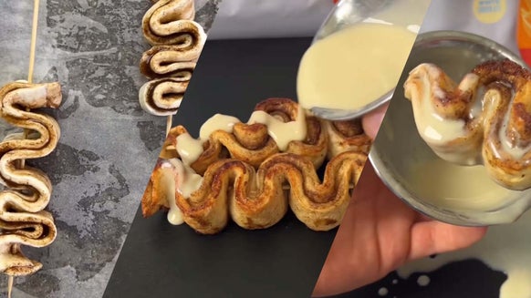 - To make the topping, mix the vegan cream cheese and almond milk together. Add a little Sugar-Free Syrup here if you prefer it sweet. Coat the tops of your giant cinnamon rolls and devour.