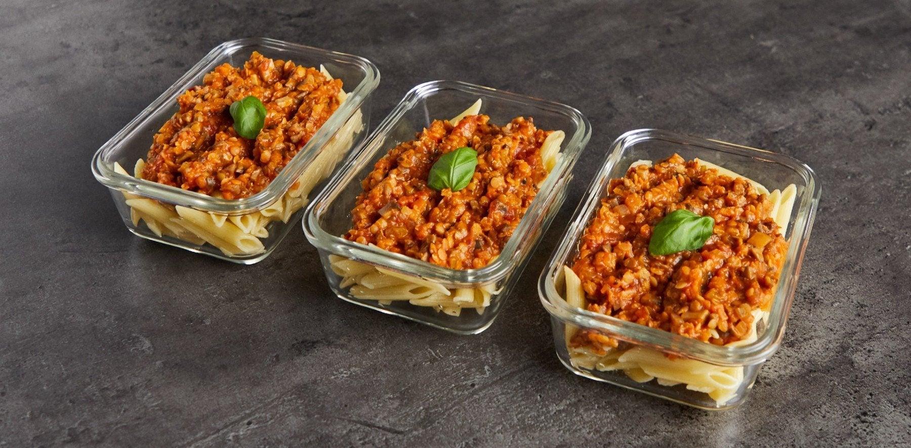 Serve immediately on a bed of freshly cooked pasta or spaghetti and garnish with fresh basil. Portion up any remaining servings into meal prep containers to enjoy later in the week.