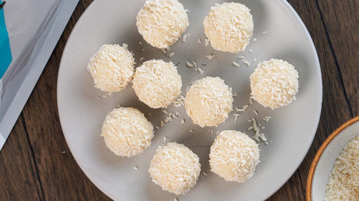 Indulge in our mouthwatering white chocolate truffle bites – packed with protein and meltingly delicious.