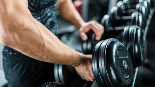 - Once you hit 90 degrees, bring the dumbbell back up without locking your elbows.