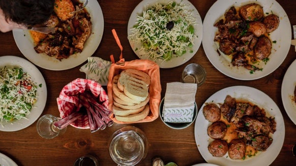 Using parallel dip bars, hold yourself off the ground with your elbows fully extended, with wrists stacked directly below the elbow and shoulder joints. As you lower yourself down, lean forward, allowing your elbows to flare out slightly as you dip down. Press yourself back up to the starting position, extending fully at the elbow.